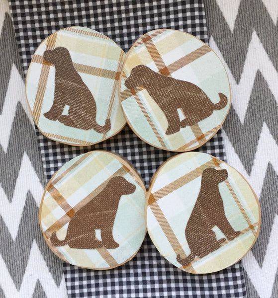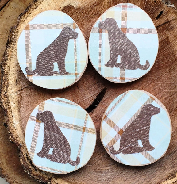 These coasters are not only beautiful but functional. They are made with three and a half inch round wood slices, approximately half an inch thick. Each one is fixed with decorative paper scraps, and then sealed with a protective poly acrylic coating. They are perfect for indoor and outdoor use. A set consists of four wood slices.